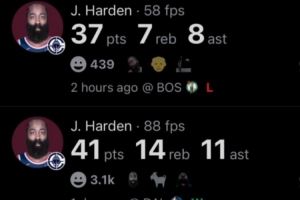 此役快船球星哈登出场37分钟22投9中,三分11中5、罚球15中14空砍全场最高37分外加7板8助1断,正负值-8。