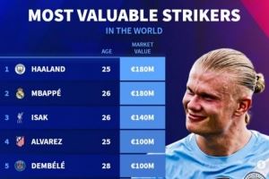 当前位置: 首页 > 资讯 > 足球资讯 > 中锋德转身价排行:哈兰德、姆巴佩1.8亿欧最高,伊萨克1.4亿欧